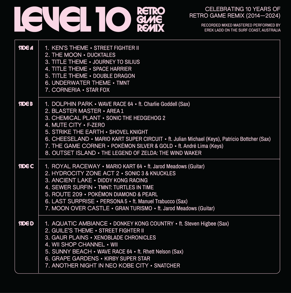 It’s been the honor of a lifetime creating new arrangements of these beloved tracks for just over a decade now so I hope you’ll join me in celebrating 10 years of RGR with Level 10!"